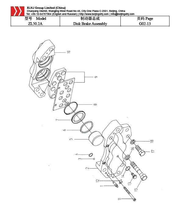 XCMG Wheel Loader ZL50.2A Drive Axle Parts Manual