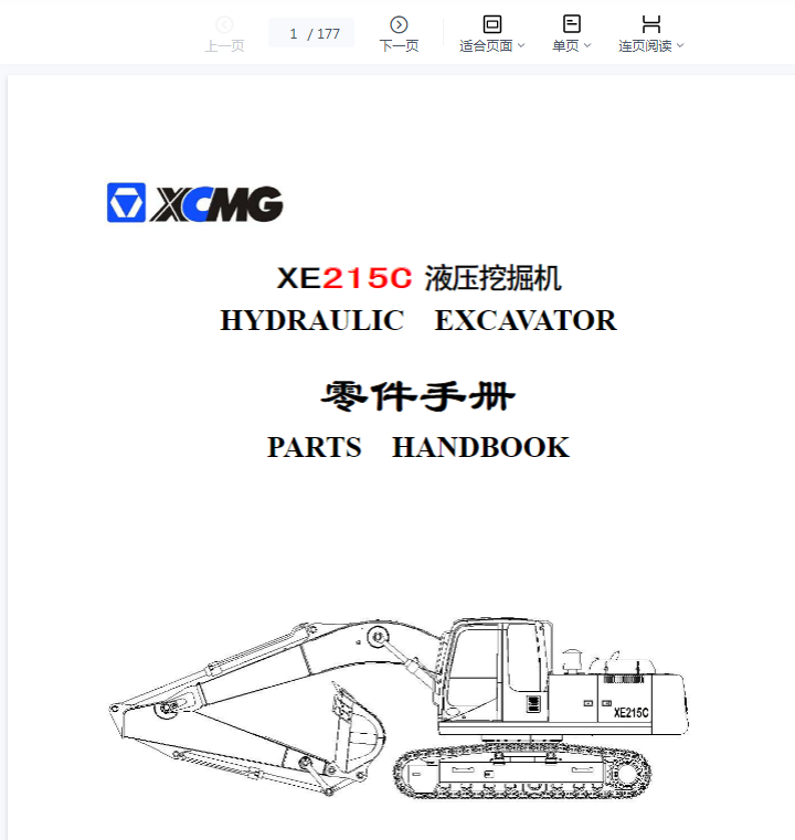 XCMG Excavator XE215C Parts Manual EN ZH共两本