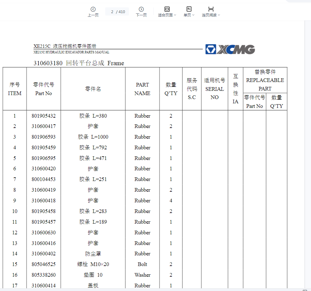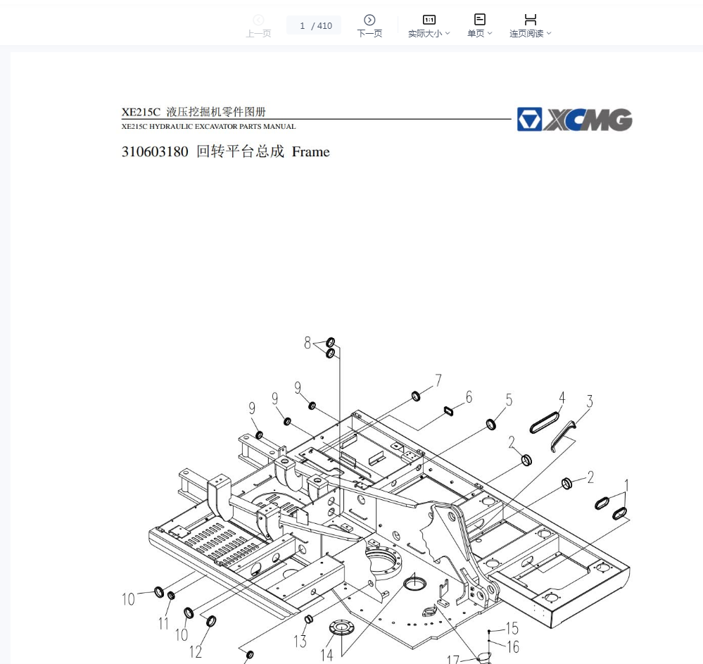 徐工XE215D液压挖掘机零件图册XCMG Excavator XE215D Parts Manual EN ZH