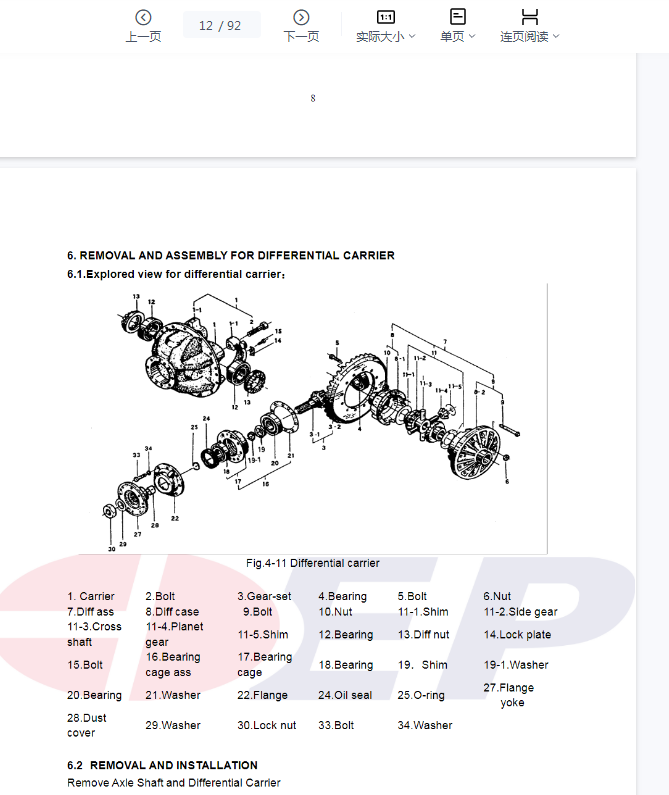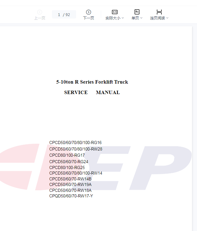 EP中力叉车零件手册和维修手册、操作员手册PDF合集1.2GB