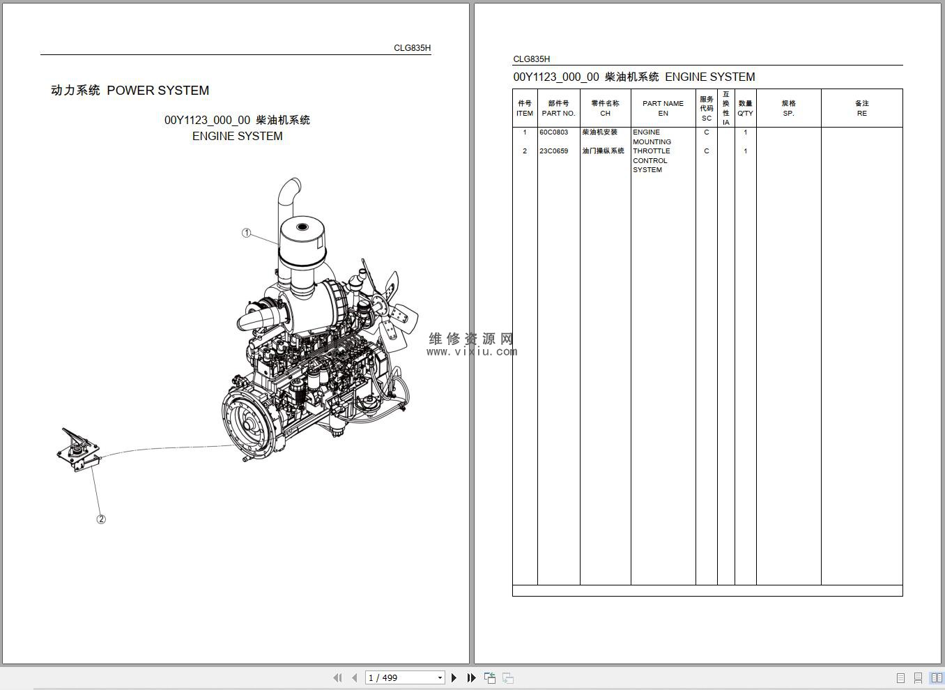柳工装载机CLG835H零件手册